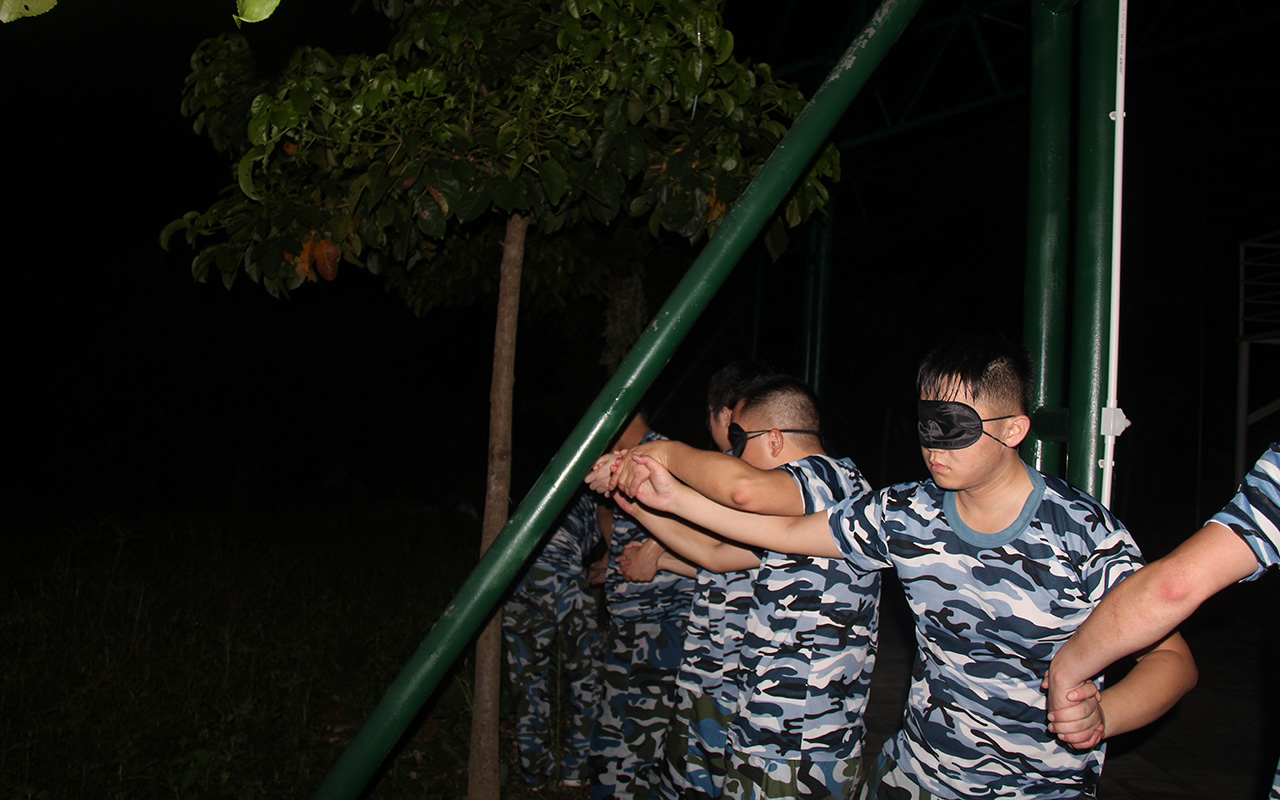 在最后的項(xiàng)目中,三隊(duì)合并成一隊(duì)按照訓(xùn)練項(xiàng)目要求,游戲過程中不能發(fā)出任何聲音,在保證絕不碰觸繩索的情況下,所有人必須從一米高,僅容1人通過的洞口通過。這一項(xiàng)目是團(tuán)隊(duì)協(xié)作能力、體力、耐力、智慧與意志的絕對(duì)挑戰(zhàn)。