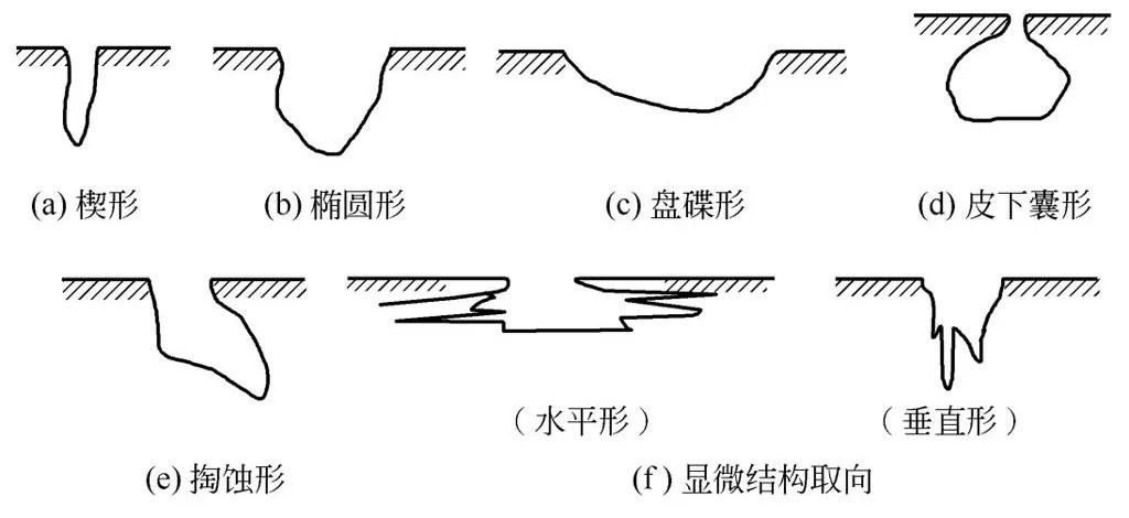 圖1 點蝕孔的各種剖面形狀(選自ASTM標(biāo)準(zhǔn))