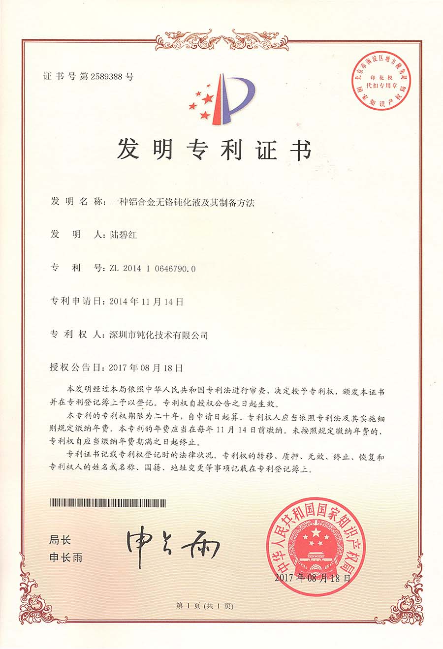 返回當(dāng)前位置:首頁 / 鈍化技術(shù) / 資質(zhì)證書