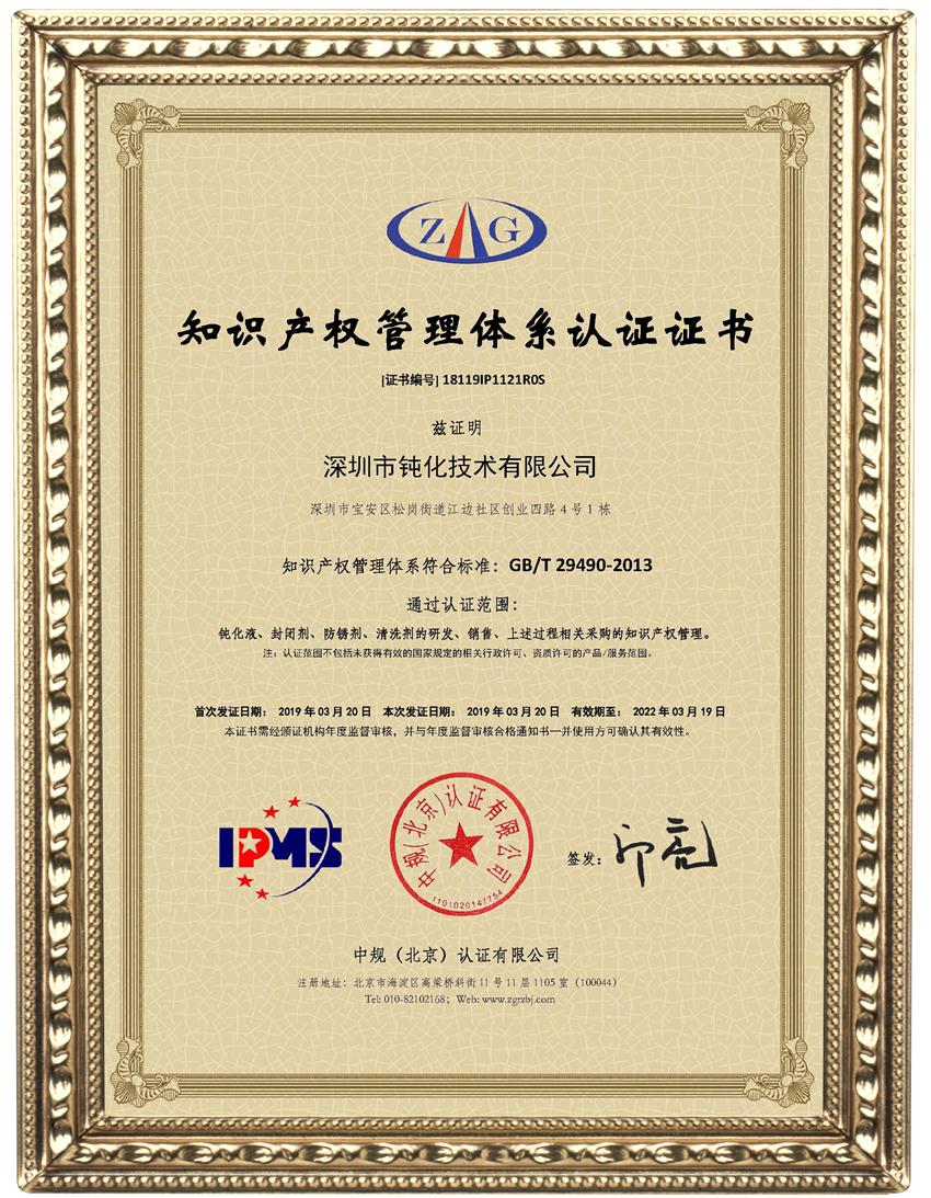 知識產(chǎn)權(quán)管理體系認(rèn)證證書
