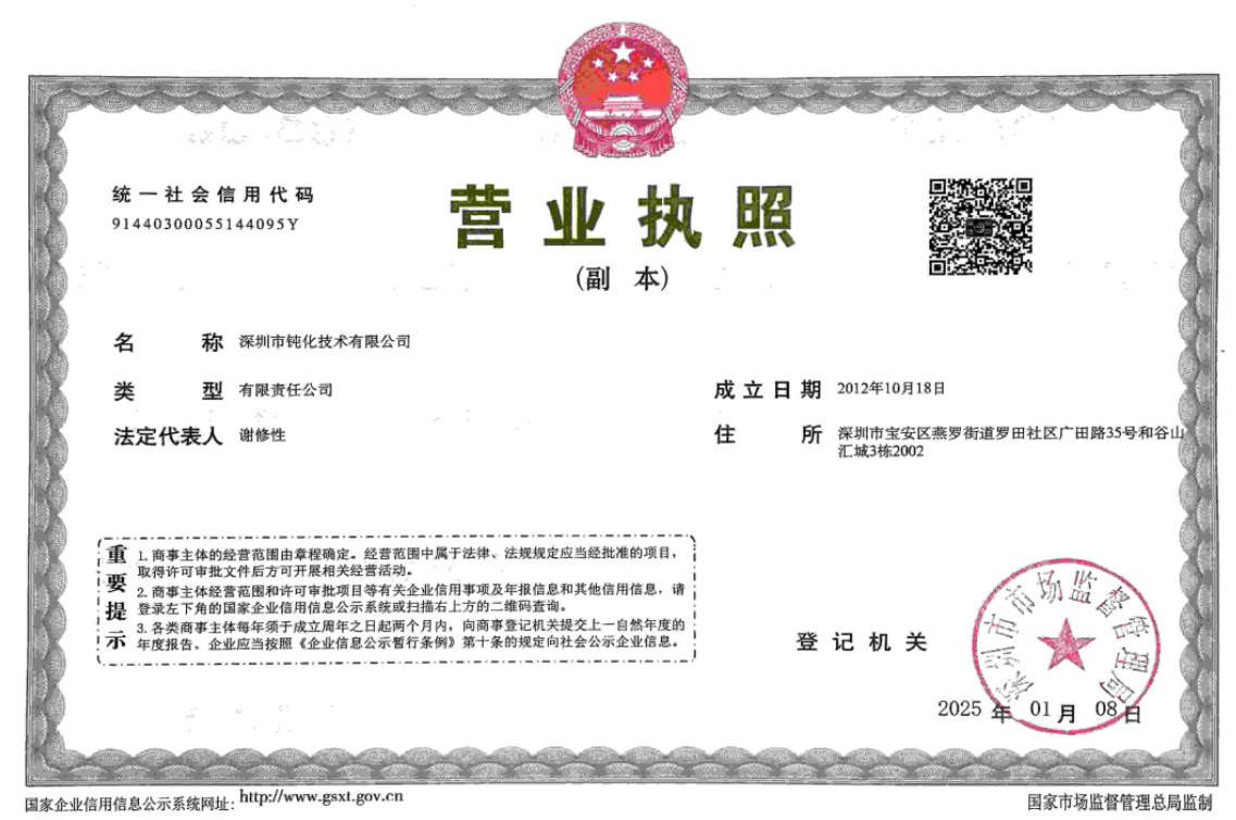 傳真:+86(755)2959 1229 郵 箱:dh@dunhua.net.cn 地 址:中國 · 深圳 · 寶安區(qū)燕羅街道廣田路35號鈍化技術(shù)大廈20層